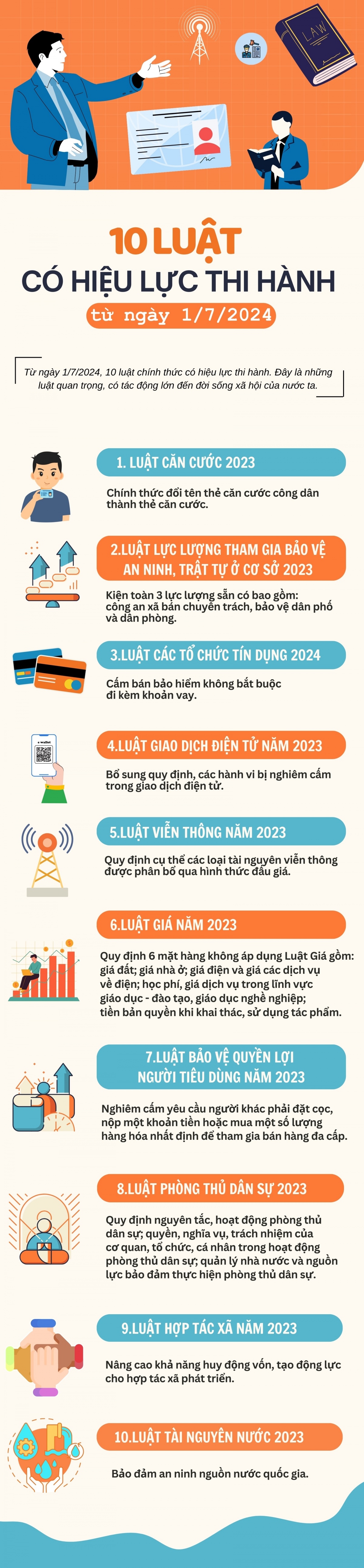 Theo VOVLink: https://vov.vn/chinh-tri/10-luat-co-hieu-luc-thi-hanh-tu-ngay-172024-post1104796.vov