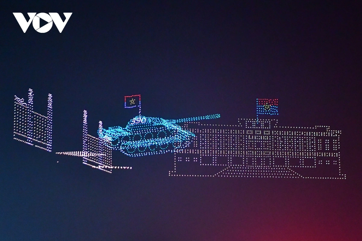 10.500 drone trên bầu trời TP.HCM tạo hình xe tăng tiến vào Dinh Độc Lập