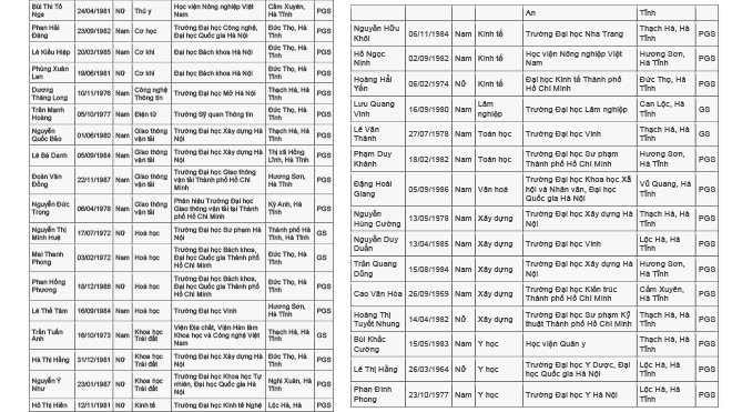 Danh sách 33 ứng viên quê Hà Tĩnh đạt chuẩn giáo sư, phó giáo sư năm 2024