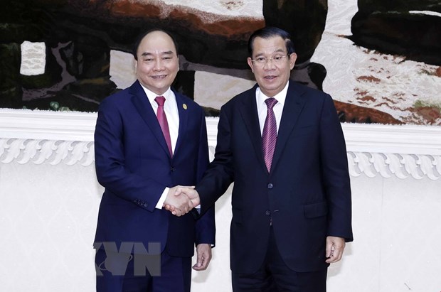 Chủ tịch nước Nguyễn Xuân Phúc và Thủ tướng Campuchia Samdech Techo Hun Sen. (Ảnh: TTXVN)