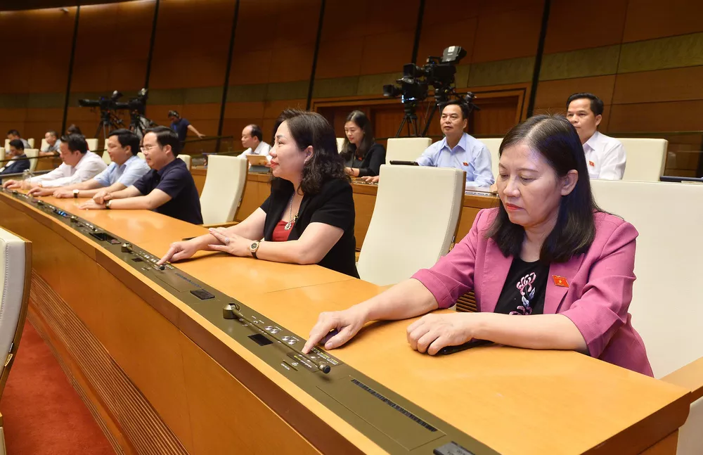 Đại biểu Quốc hội ấn nút biểu quyết Luật Phòng, chống bạo lực gia đình (sửa đổi)