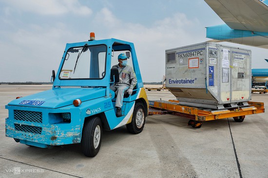 Lô vaccine đầu tiên về Việt Nam ngày 24/2, tại sân bay Tân Sơn Nhất, TP HCM. Ảnh: Hữu Khoa.