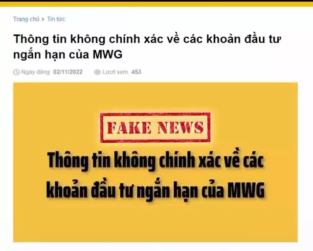 Một số hội nhóm trên mạng xã hội mới đây đã lan truyền những thông tin không đúng về các khoản đầu tư ngắn hạn của một doanh nghiệp. Để tránh những thiệt hại và dư luận xấu, doanh nghiệp này đã phải đăng tải thông tin trên website của mình cũng như trên các phương tiện thông tin đại chúng.