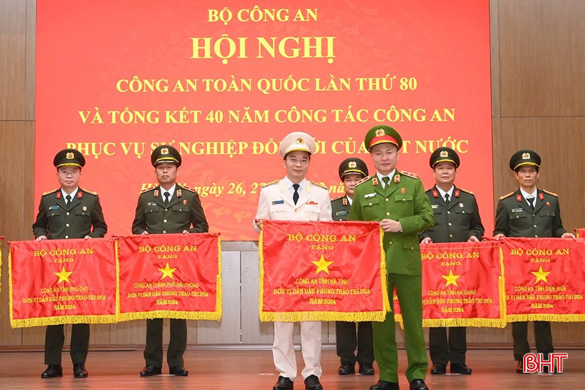 Thứ trưởng Nguyễn Ngọc Lâm trao cờ dẫn đầu phong trào thi đua của Bộ Công an cho Công an Hà Tĩnh.