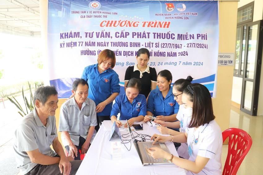Huyện đoàn, Hội LHTN Việt Nam huyện Hương Sơn phối hợp CLB Thầy thuốc trẻ huyện, Chi đoàn Trung tâm Y tế huyện tổ chức khám, tư vấn sức khỏe, cấp phát thuốc miễn phí cho hơn 350 người có công, gia đình chính sách...