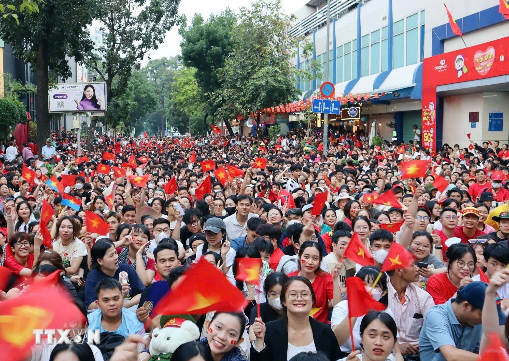 Người dân tới xem diễu binh, diễu hành kỷ niệm 50 năm ngày giải phóng miền Nam, thống nhất đất nước. (Ảnh: Xuân Anh/TTXVN)
