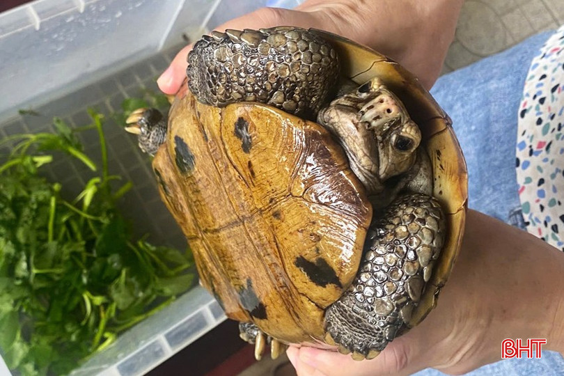 Sáng 20/7, gia đình anh Nguyễn Thanh Hảo (SN 1979, ở thôn Kim Tân, xã Hồng Lộc, Hà Tĩnh) bắt được 1 cá thể rùa núi vàng ở mương nước trong khuôn viên vườn nhà. Nghi ngờ đây là động vật quý hiếm nên gia đình anh Hảo đã trình báo với công an xã Hồng Lộc và lực lượng kiểm lâm.