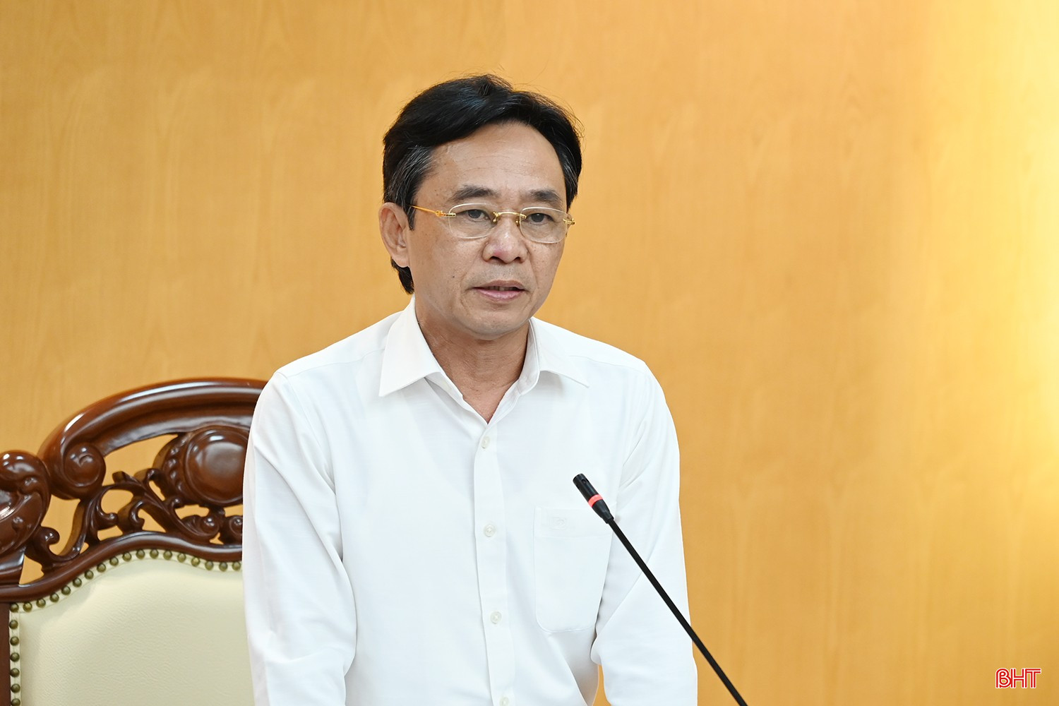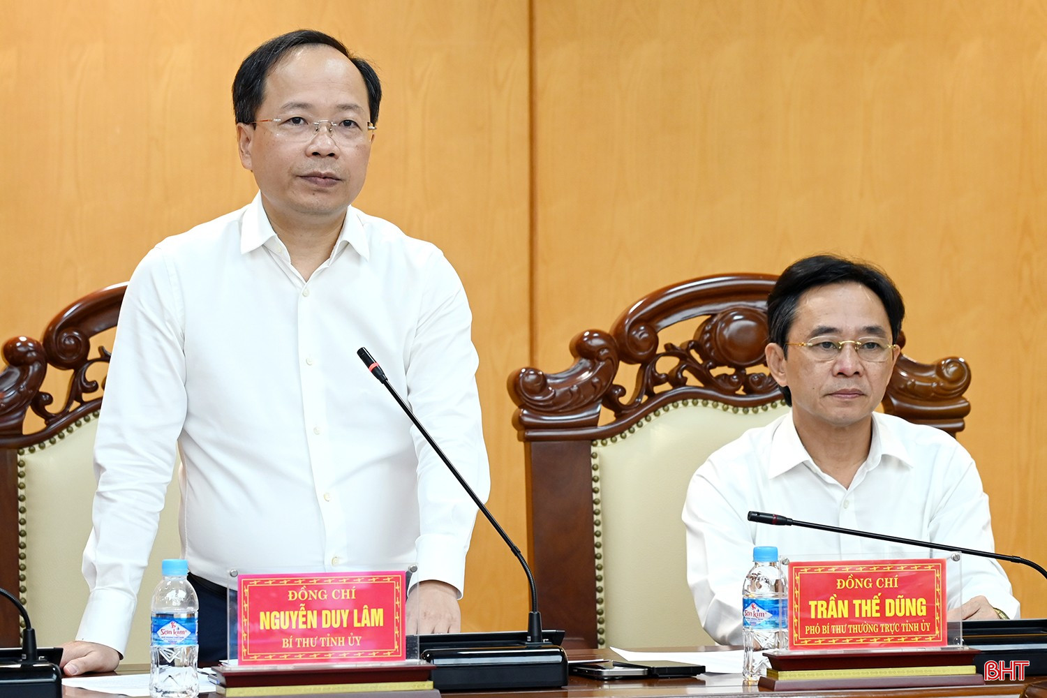 Phó Bí thư Thường trực Tỉnh ủy Trần Thế Dũng phát biểu tại cuộc họp (ảnh: BHT)