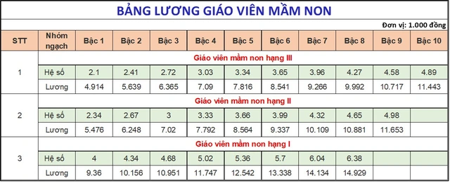Bảng lương dự kiến của giáo viên từ 1/7/2024