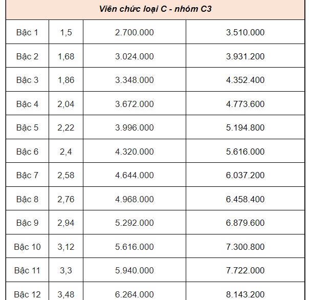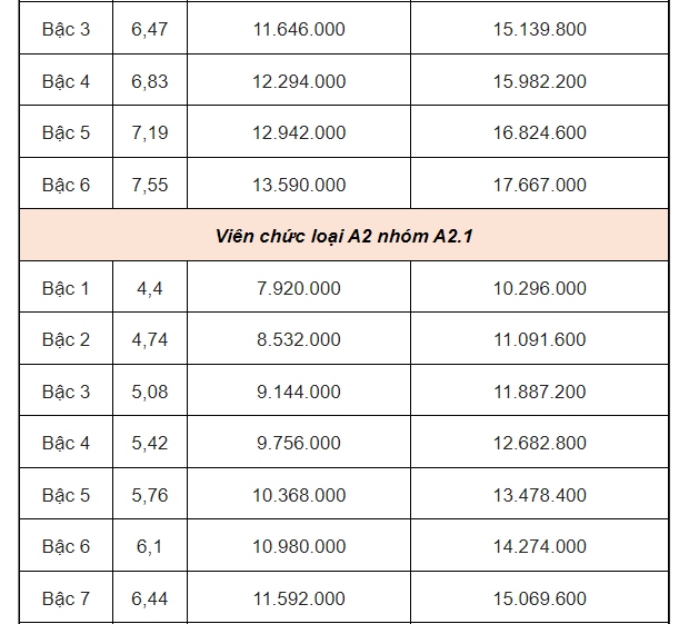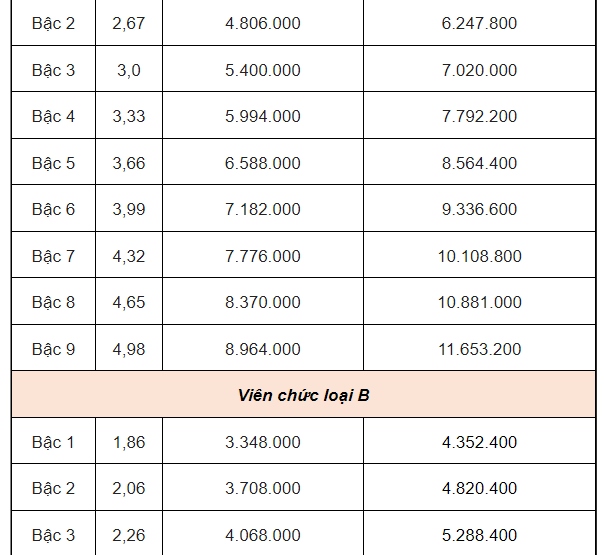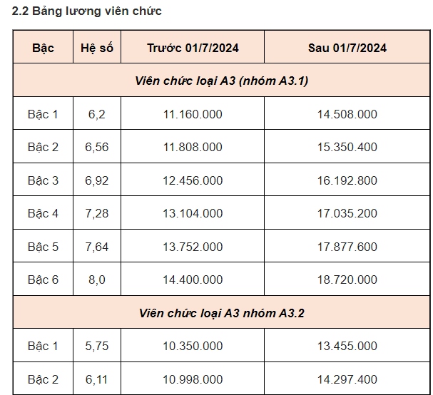Bảng lương dự kiến của viên chức từ 1/7/2024