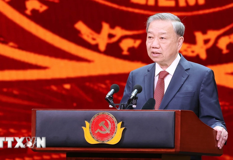 Tổng Bí thư Tô Lâm phát biểu tại lễ trao Giải Báo chí toàn quốc về xây dựng Đảng lần thứ IX - năm 2024. Ảnh: TTXVN.