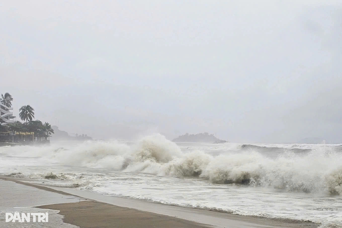 Sóng biển dâng cao tại Nha Trang, Khánh Hòa chiều 6/11 (Ảnh: Trung Thi).