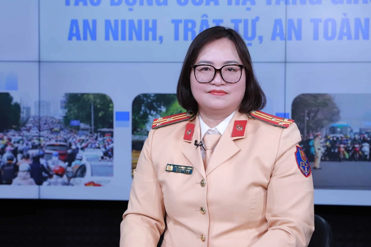 Đại tá Tạ Thị Hồng Minh, Phó Trưởng phòng Tuyên truyền điều tra, Cục Điều tra và giải quyết tai nạn giao thông, Cục Cảnh sát giao thông (Bộ Công an). Ảnh Tô Thế.
