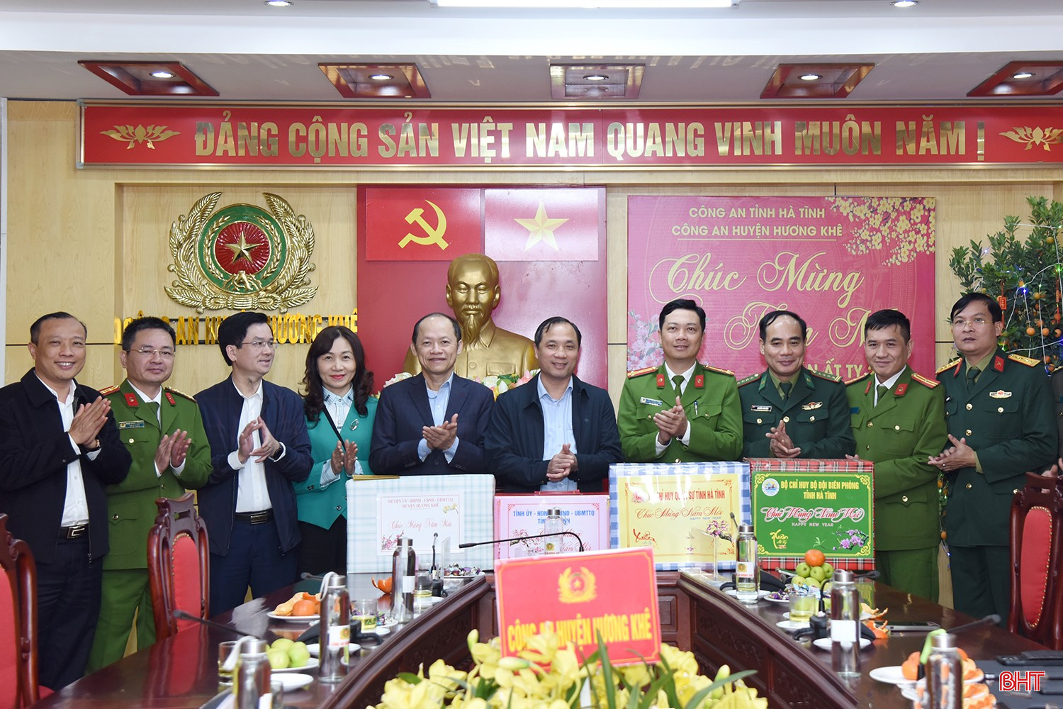 Bí thư Tỉnh ủy và đoàn chúc tết Công an Hương Khê.