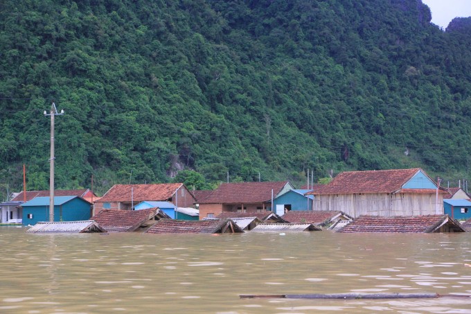 Nước lũ ngập lên tận mái nhà của người dân ở làng du lịch Tân Hóa ngày 21/9. Ảnh: Võ Thạnh
