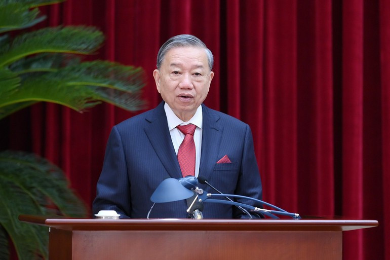 Tổng Bí thư Tô Lâm phát biểu tại phiên khai mạc. (Ảnh: ĐĂNG KHOA)