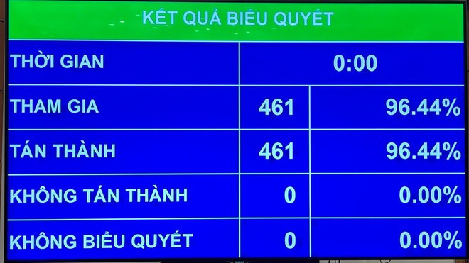 Kết quả biểu quyết cho thấy, 461/461 đại biểu đã biểu quyết tán thành thông qua Luật sửa đổi, bổ sung một số điều của Luật Tổ chức Quốc hội.