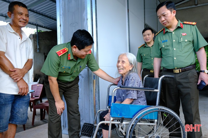 Đoàn công tác cũng đã trao quà của đồng chí Bộ trưởng và các đồng chí Thứ trưởng Bộ Công an đến bà Nguyễn Thị Lộc.
