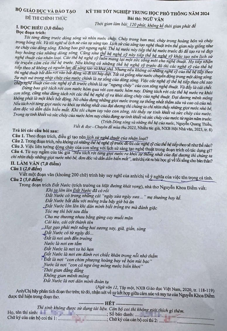 Ban Chỉ đạo cấp quốc gia kỳ thi tốt nghiệp THPT năm 2024 khẳng định, đề thi môn Ngữ Văn được ra đúng với cấu trúc, định dạng đã được Bộ GD-ĐT công bố, có sự phân phối hợp lý giữa phần thơ và phần văn.