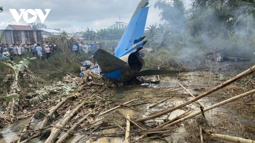 Hiện trường vụ rơi máy bay. Ảnh: VOV- Miền Trung