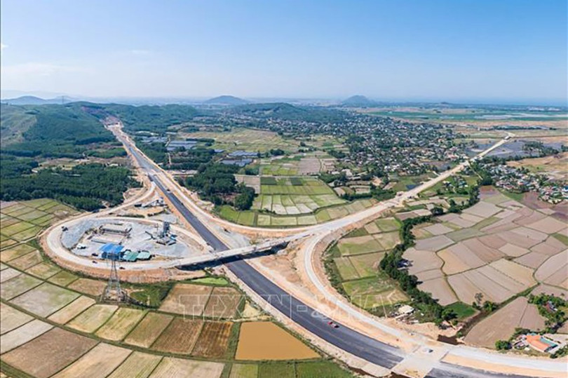 Nút giao trên cao tốc Quảng Ngãi - Hoài Nhơn. Ảnh: TTXVN Công điện nêu rõ: Nghị quyết Đại hội lần thứ XIII của Đảng đã xác định phát triển kết cấu hạ tầng đồng bộ,