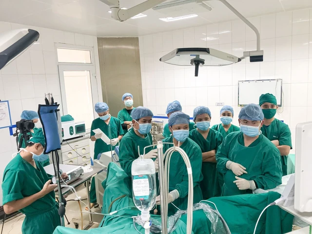 Các bác sĩ Bệnh viện Đa khoa Thành phố Hà Tĩnh thực hiện tán sỏi niệu quản bằng laze cho bệnh nhân