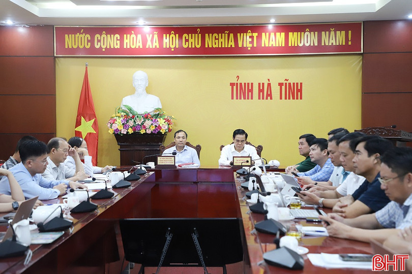 Bí thư Tỉnh ủy Hoàng Trung Dũng, Chủ tịch UBND tỉnh Võ Trọng Hải điều hành điểm cầu Hà Tĩnh.