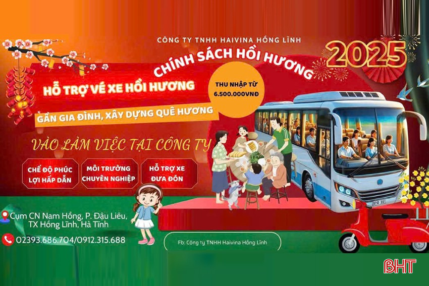 Để đáp ứng nguồn lao động cho sản xuất, kinh doanh sau kỳ nghỉ tết Nguyên đán Ất Tỵ 2025, Công ty TNHH Haivina Hồng Lĩnh (Cụm công nghiệp Nam Hồng ở phường Đậu Liêu, TX Hồng Lĩnh) đã thông báo nhu cầu tuyển dụng 1.000 công nhân may và học may. Người lao động có thể nộp hồ sơ ứng tuyển mỗi ngày tại công ty. Người lao động chưa biết việc sẽ được đào tạo tay nghề với nhiều phúc lợi, môi trường làm việc an toàn, thân thiện.