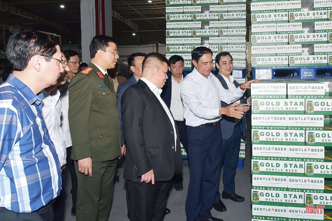 Đoàn công tác cũng đến kiểm tra sản xuất tại Nhà máy bia Nghệ Tĩnh tại thị xã Hồng Lĩnh; Nhà máy chế biến gỗ, cơ khí của Công ty TNHH Thanh Thành Đạt tại Cụm công nghiệp Xuân Lĩnh, huyện Nghi Xuân.