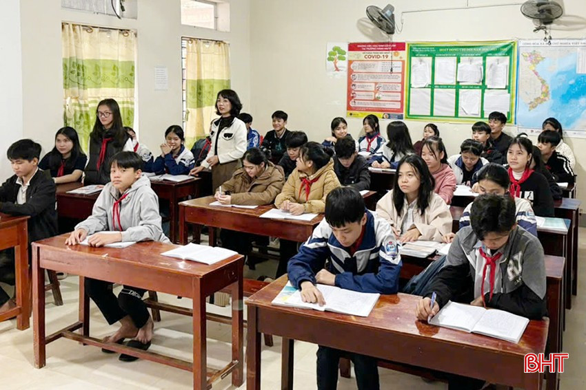 Trường THCS Thạch Kim tập trung thực hiện tốt việc phân hóa đối tượng học sinh, ưu tiên bố trí giáo viên hướng dẫn kiến thức cho học sinh lớp 9.