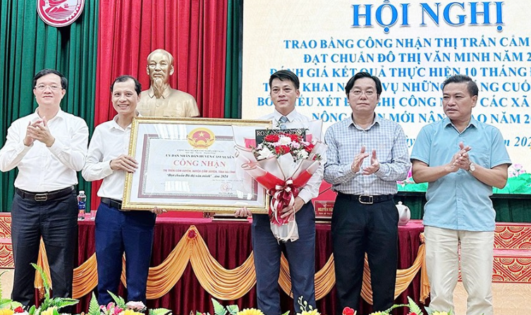 Trao bằng công nhận thị trấn Cẩm Xuyên đạt chuẩn đô thị văn minh năm 2024.