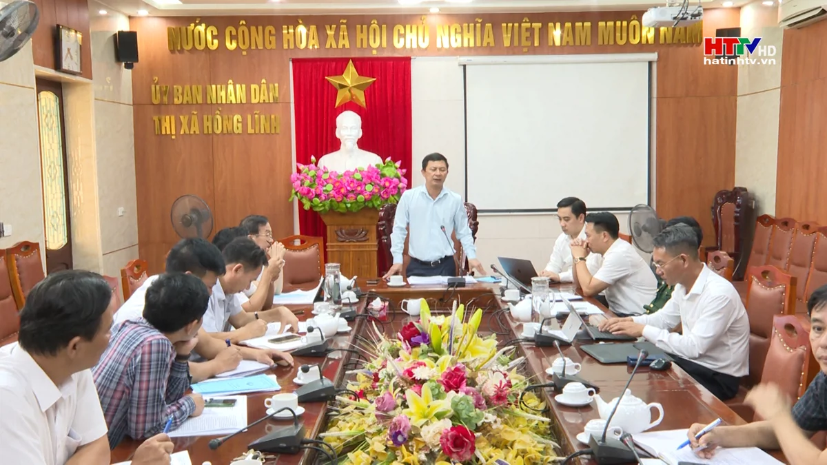 Phó Chủ tịch UBND tỉnh Lê Ngọc Châu, Phó Trưởng ban Chỉ huy Phòng chống thiên tai và Tìm kiếm cứu nạn tỉnh làm việc với lãnh đạo thị xã Hồng Lĩnh và các ngành liên quan
