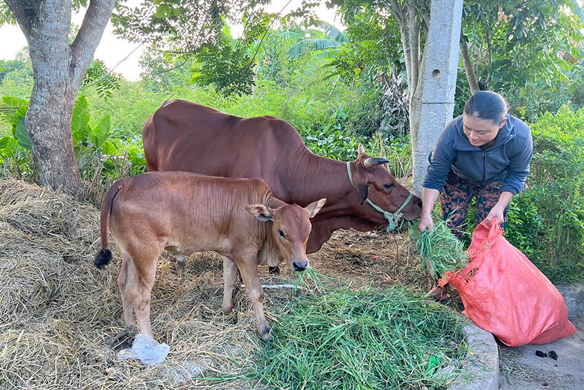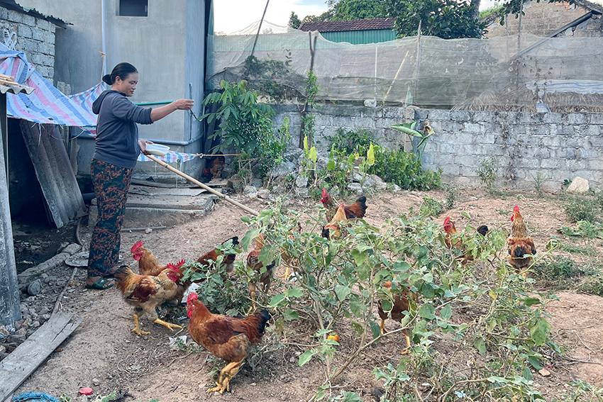 Năm 2021, nguồn vốn vay 20 triệu đồng của Quỹ Phát triển phụ nữ đã giúp chị Châu có điều kiện tăng số lượng đàn gà, vịt, ngan ngỗng và mua thêm 2 con bò nái để gây giống. Ngoài những ngày công thợ hồ của chồng, chị Châu cũng tranh thủ lúc nông nhàn đi làm thuê, chạy chợ để có thêm nguồn thu nhập.