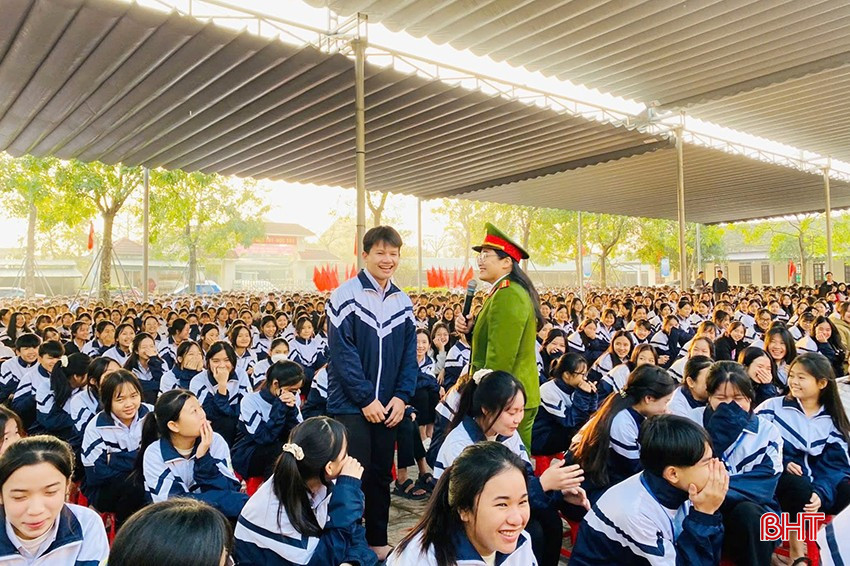 Các trường học tăng cường phối hợp giáo dục pháp luật cho học sinh. Ảnh chụp tại Trường THPT Hà Huy Tập (Cẩm Xuyên).