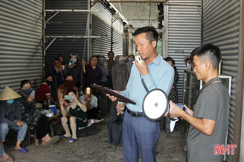 Sau khi công bố quyết định đóng cửa chợ, lực lượng chức năng tiến hành cắt hệ thống điện, đóng 6 cửa phụ của đình chợ. Riêng cửa chính vẫn để cho một số tiểu thương tiếp tục thu dọn hàng hóa.