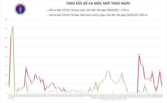 - Tính từ 6h đến 18h ngày 09/02: 16 ca mắc mới, trong đó có 3 ca nhập cảnh được cách ly ngay.