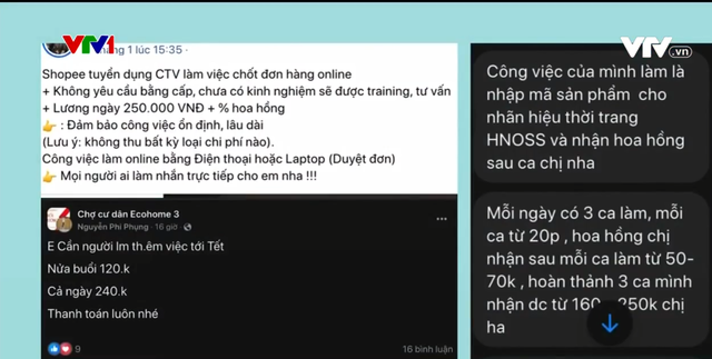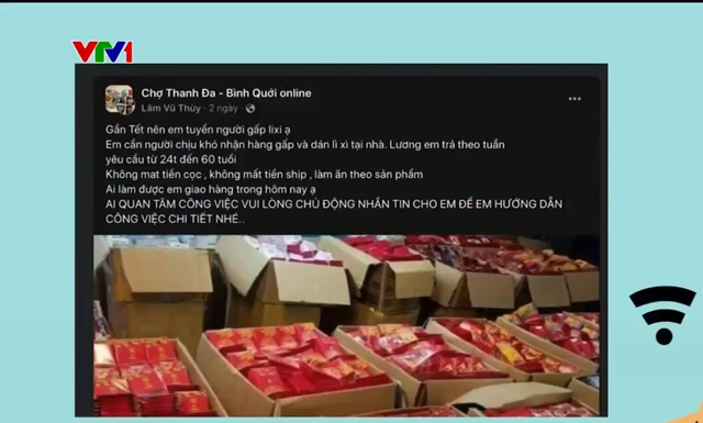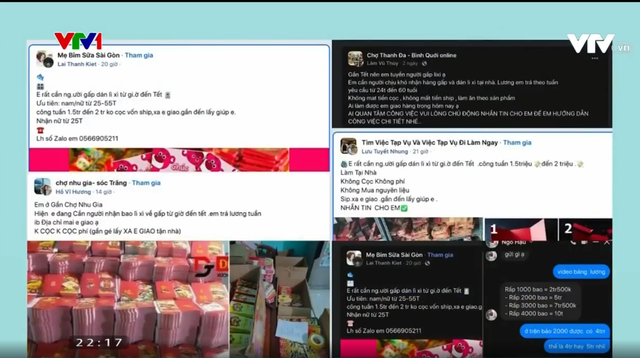Dịp cận Tết, trên các trang mạng xã hội, không khó để bắt gặp các bài đăng tuyển người lao động làm việc thời vụ với lời hứa hẹn: việc nhẹ lương cao, làm việc tại nhà, không phải cọc tiền…; những công việc như gấp lì xì, cộng tác viên tăng tương tác bán hàng, dịch thuật hay lồng tiếng thu âm cho các chương trình cuối năm… Nếu bạn có đang quan tâm đến những dòng tuyển dụng này thì cần hết sức cẩn trọng vì đây có thể là một chiêu trò lừa đảo trực tuyến.
