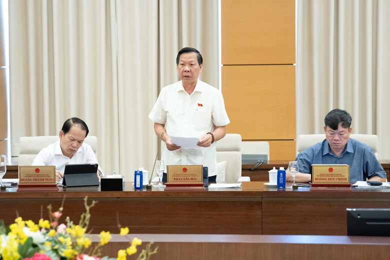 Chủ nhiệm Uỷ ban Kinh tế và Tài chính Phan Văn Mãi trình bày báo cáo thẩm tra