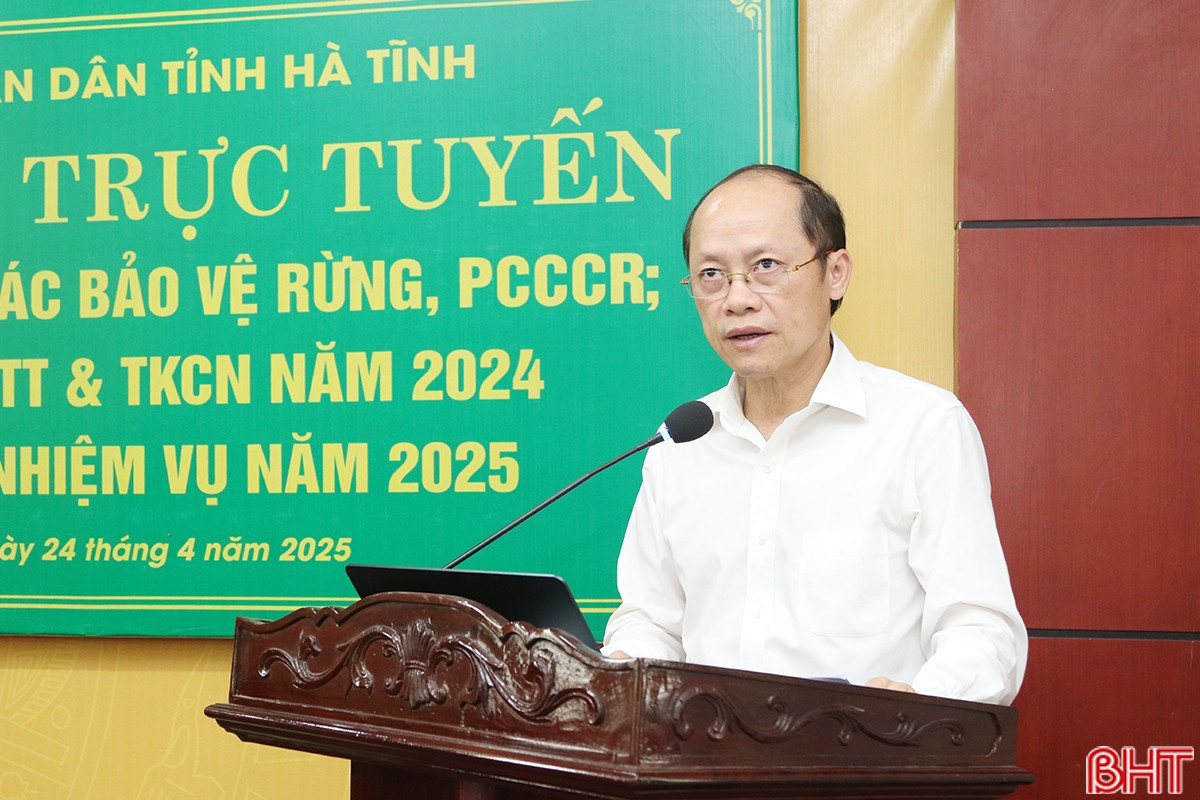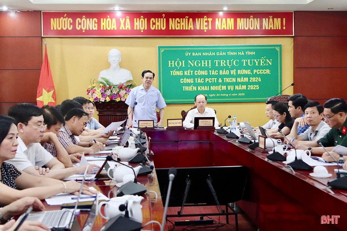 Chiều 24/4, Chủ tịch UBND tỉnh Võ Trọng Hải và Phó Chủ tịch Thường trực UBND tỉnh Nguyễn Hồng Lĩnh chủ trì hội nghị tổng kết công tác bảo vệ rừng, phòng cháy, chữa cháy rừng (BVR-PCCCR) và công tác phòng, chống thiên tai và tìm kiếm cứu nạn (PCTT&TKCN) năm 2024, triển khai nhiệm vụ năm 2025.