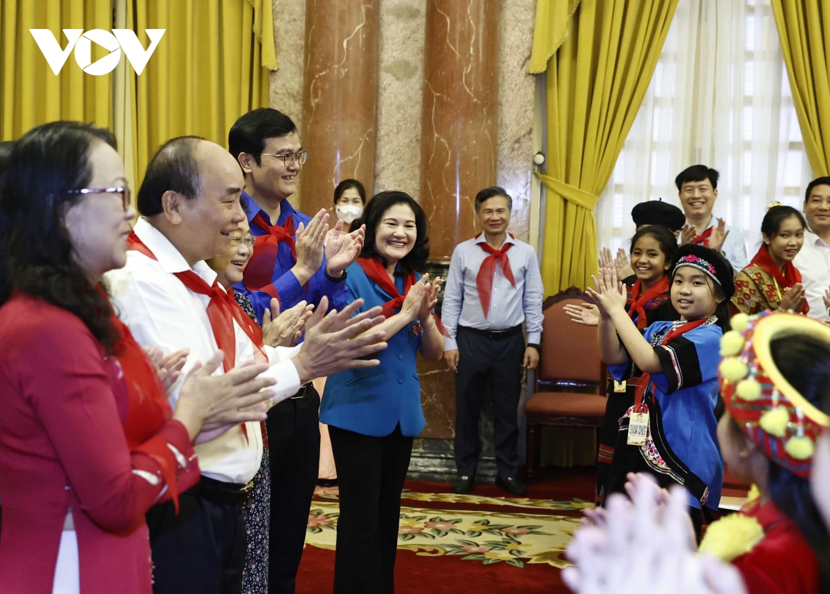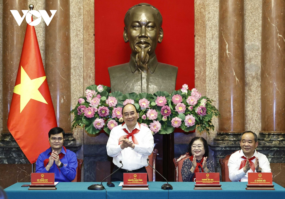 Chủ tịch nước bày tỏ vui mừng, phấn khởi khi được biết các cháu thiếu nhi đã có rất nhiều nỗ lực, cố gắng, vượt qua khó khăn, nhất là trong thời gian dịch bệnh vừa qua, không ngừng phấn đấu, rèn luyện để đạt thành tích cao trong học tập, là con ngoan, trò giỏi; rất tích cực tham gia các hoạt động của tổ chức Đội Thiếu niên Tiền phong Hồ Chí Minh, nhiều cháu đã đạt được thành tích cao trong những sân chơi, cuộc thi học sinh giỏi cấp quốc gia và quốc tế. Biểu dương thành tích đã đạt được, Chủ tịch nước mong muốn các cháu thiếu nhi tiếp nối truyền thống vẻ vang của thiếu niên, nhi đồng Việt Nam, phát huy truyền thống của dân tộc, tiếp bước các thế hệ cha anh đi trước, không ngừng thi đua học tập, rèn luyện, thực hiện tốt 5 điều Bác Hồ dạy, xứng đáng là con ngoan, trò giỏi, đội viên tốt, cháu ngoan Bác Hồ, là những người con ưu tú trong đại gia đình các dân tộc Việt Nam.