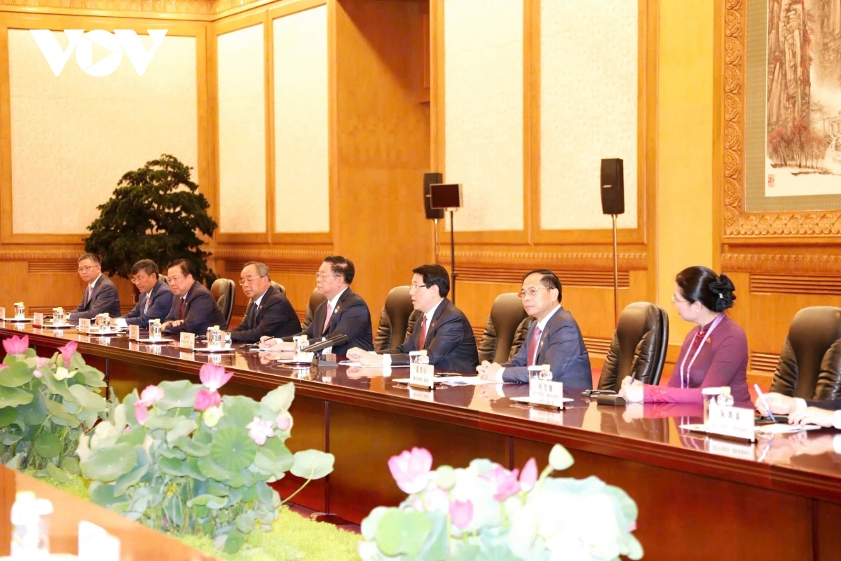 Trong không khí hữu nghị, chân thành, tin cậy và cởi mở, Lãnh đạo hai nước bày tỏ vui mừng trước những tiến triển tích cực trong quan hệ Việt Nam - Trung Quốc thời gian qua, nhất là sau các chuyến thăm lẫn nhau giữa Tổng Bí thư Tô Lâm và Tổng Bí thư, Chủ tịch nước Tập Cận Bình trong hai năm liên tiếp 2024 và 2025. Hai bên đi sâu trao đổi về phương hướng và các biện pháp lớn để tiếp tục làm sâu sắc hơn nữa quan hệ Đối tác hợp tác chiến lược toàn diện, xây dựng Cộng đồng chia sẻ tương lai Việt Nam - Trung Quốc có ý nghĩa chiến lược trong thời gian tới.