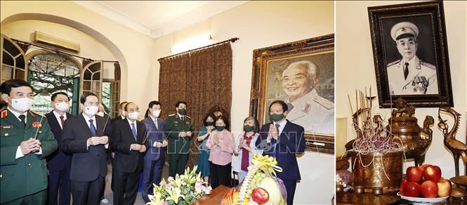 Chủ tịch nước Nguyễn Xuân Phúc dẫn đầu Đoàn lãnh đạo Đảng, Nhà nước, Mặt trận Tổ quốc Việt Nam tới dâng hương, dâng hoa tưởng nhớ Đại tướng Võ Nguyên Giáp tại nhà riêng ở 30 Hoàng Diệu (Hà Nội).