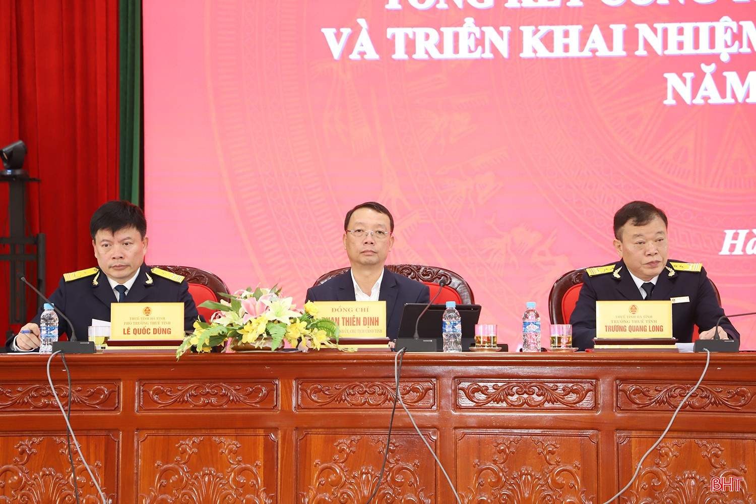 Thay mặt lãnh đạo tỉnh, Chủ tịch UBND tỉnh Phan Thiên Định biểu dương và đánh giá cao tinh thần trách nhiệm, sự nỗ lực, đoàn kết của tập thể lãnh đạo, cán bộ, công chức, người lao động ngành Thuế Hà Tĩnh đã đóng góp quan trọng vào kết quả chung của tỉnh.