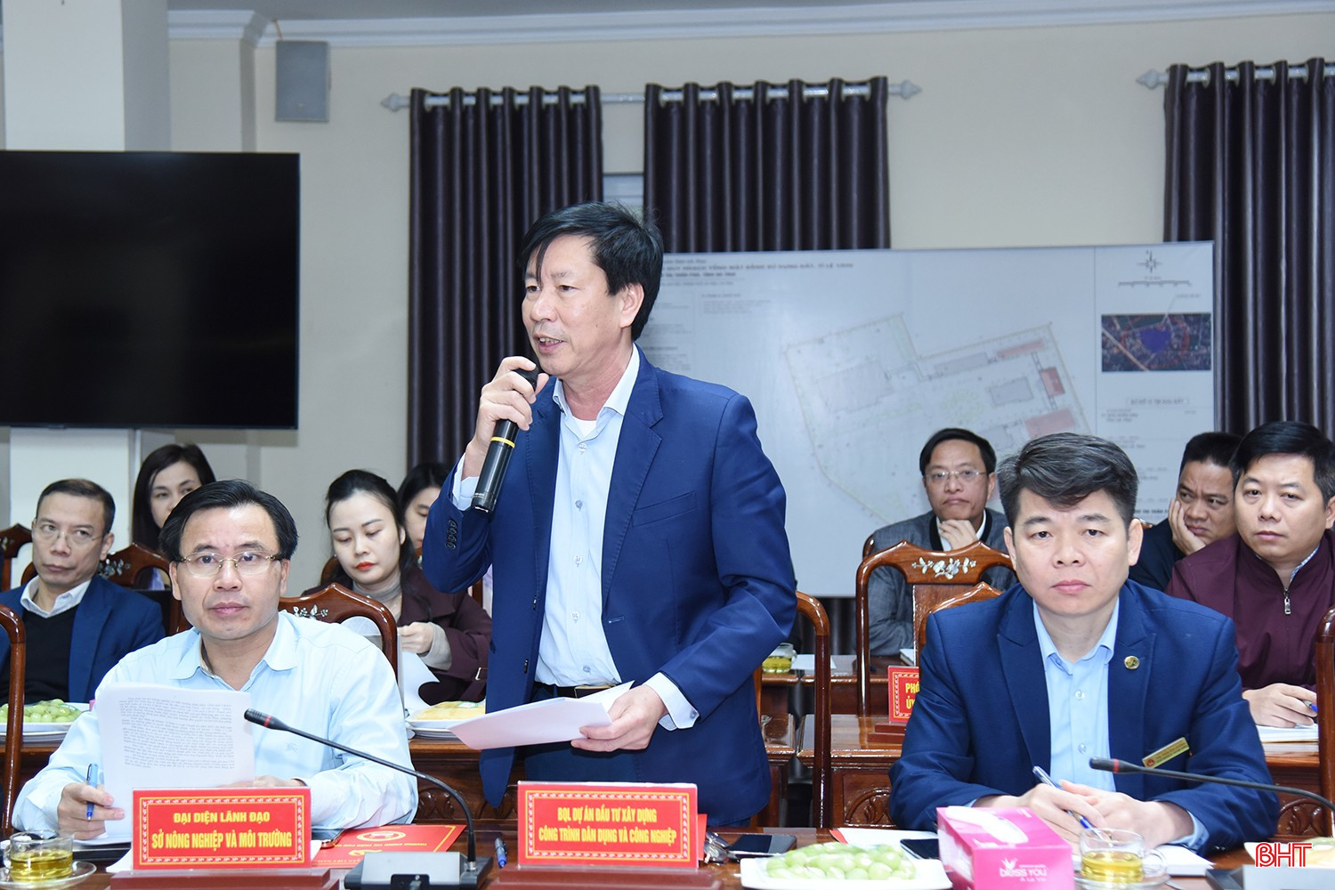 Ông Bùi Huy Cường - Giám đốc Ban Quản lý dự án đầu tư xây dựng công trình dân dụng và công nghiệp tỉnh Hà Tĩnh phân tích các nội dung liên quan đến "Dự án xây dựng Trường Chính trị Trần Phú".