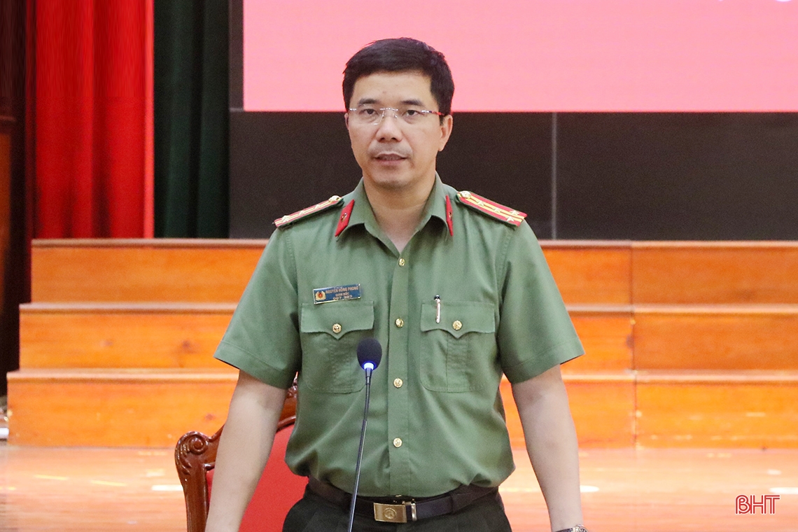 Đại tá Nguyễn Hồng Phong - Ủy viên BTV Tỉnh ủy, Bí thư Đảng ủy, Giám đốc Công an tỉnh chủ trì hội nghị.