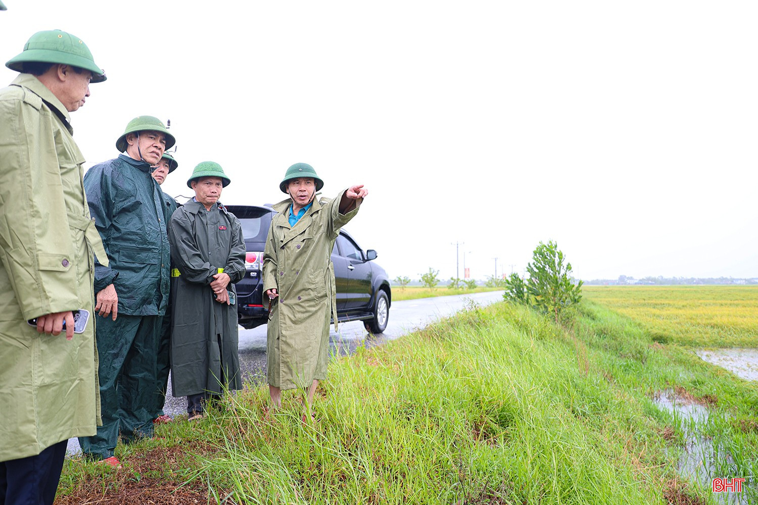 Chủ tịch UBND tỉnh cũng đã đến kiểm tra khu vực lúa hè thu bị đổ, ngập úng tại xã Cẩm Duệ.