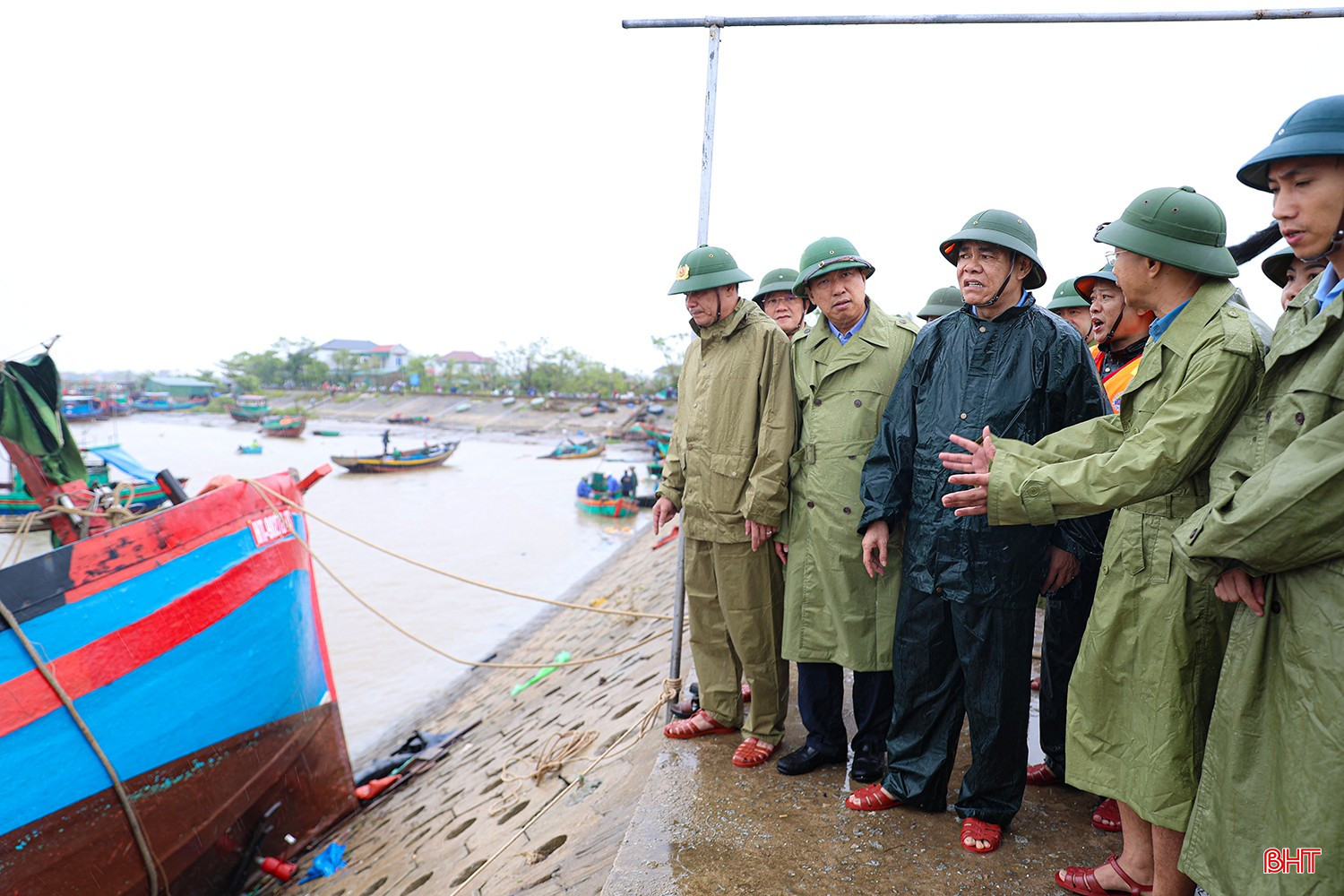 Chủ tịch UBND tỉnh kiểm tra tình hình thiệt hại và động viên bà con ngư dân tại cảng cá Cửa Nhượng.