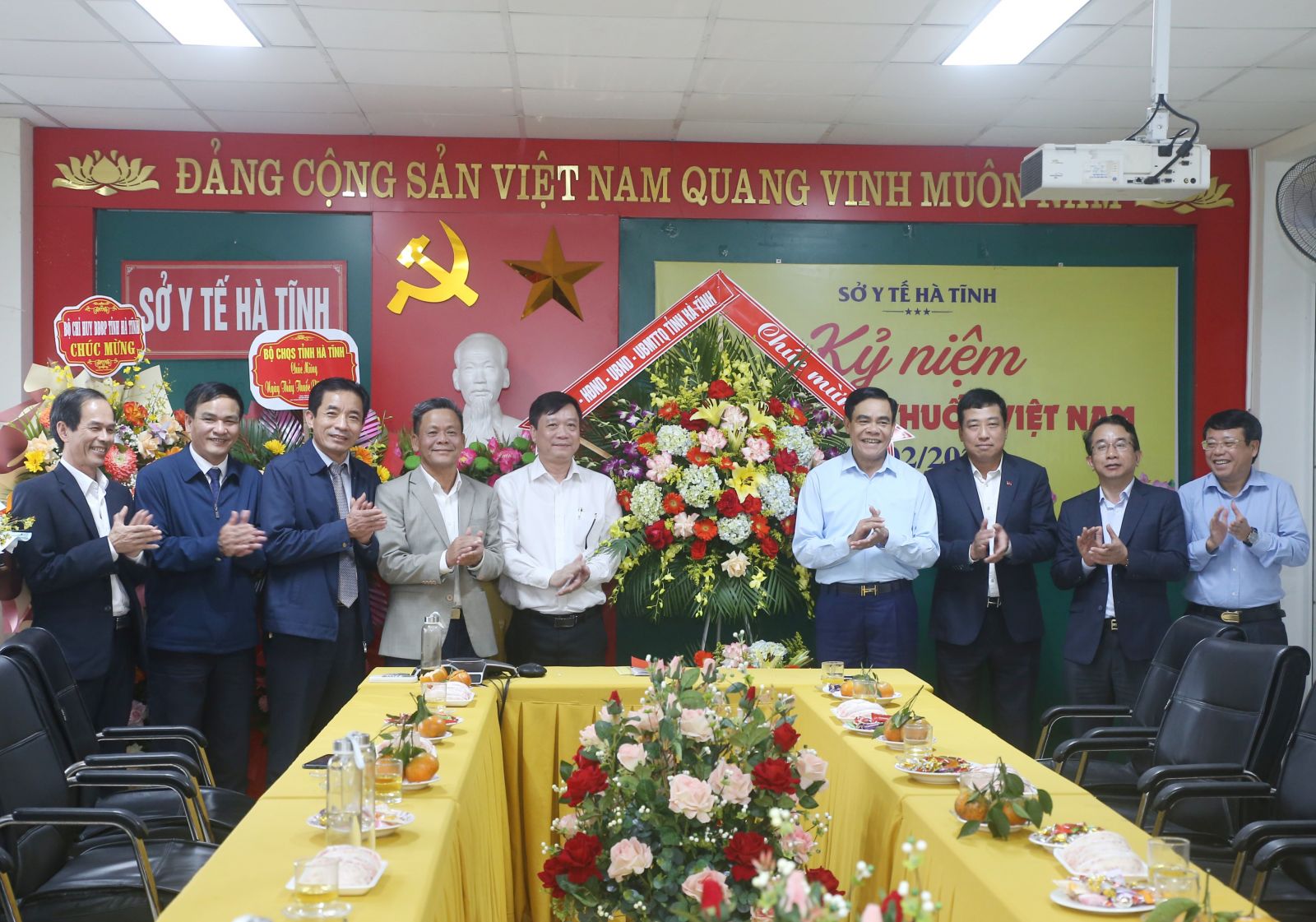 Lãnh đạo tỉnh tặng hoa chúc mừng Sở Y tế.