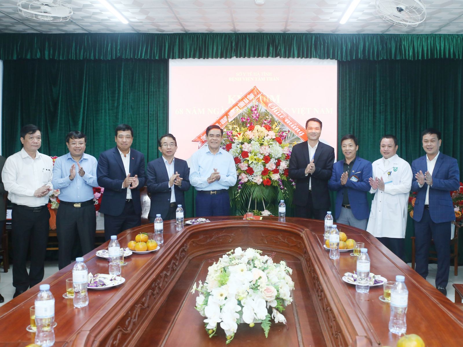 Đoàn lãnh đạo tỉnh tặng hoa chúc mừng Bệnh viện Tâm thần Hà Tĩnh.