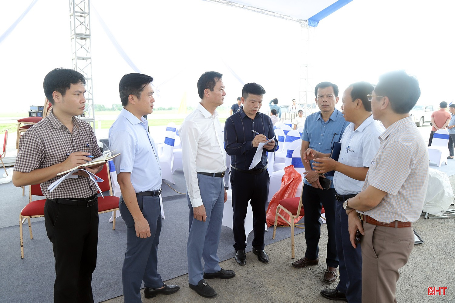 Phó Chủ tịch UBND tỉnh Trần Báu Hà giao nhiệm vụ cho các đơn vị liên quan tại địa điểm diễn ra sự kiện thuộc địa phận xã Thanh Bình Thịnh, huyện Đức Thọ.